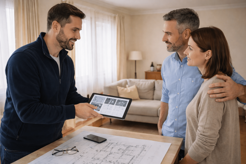 Tout commence par un appel. Vous nous décrivez votre projet, vos envies, vos contraintes, et nous vous posons les bonnes questions pour évaluer ensemble la faisabilité et le périmètre des travaux. Cet échange nous permet de comprendre votre besoin avant de nous déplacer, et de vous donner un premier niveau d’information.